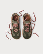 - Parte superior: Couro e couro rachado - Uma combinação que proporciona resistência e durabilidade, com um acabamento elegante.